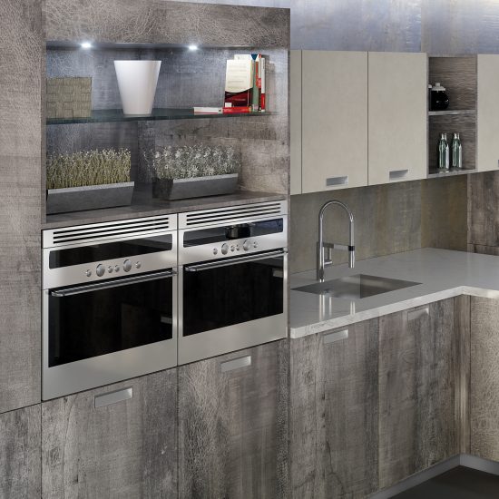El modelo H19 de la colección HÁBITAT 19 destaca por la gama de acabados en madera, piedra y cemento, creando una simbiosis perfecta.